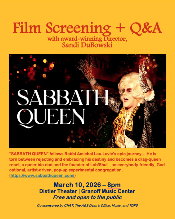 Join us March 10 for a screening of the film "Sabbath Queen" followed by a discussion with the film director, Sandi Dubowski.